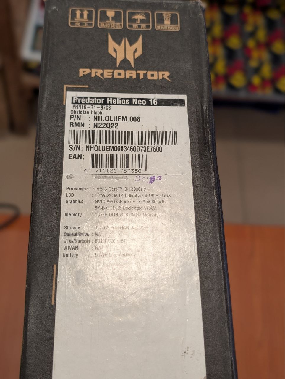 18 – Acer Predator Helios Neo PHN16 14th Gen Ci9-14900HX 16GB 1TB SSD