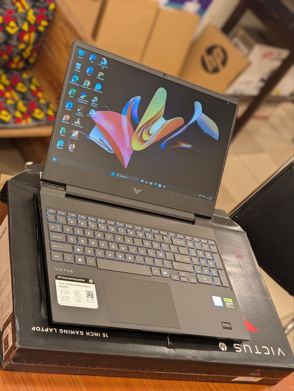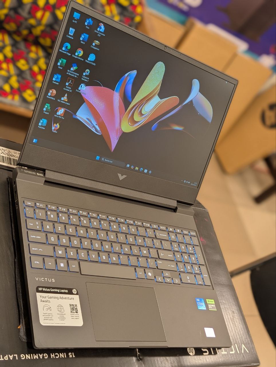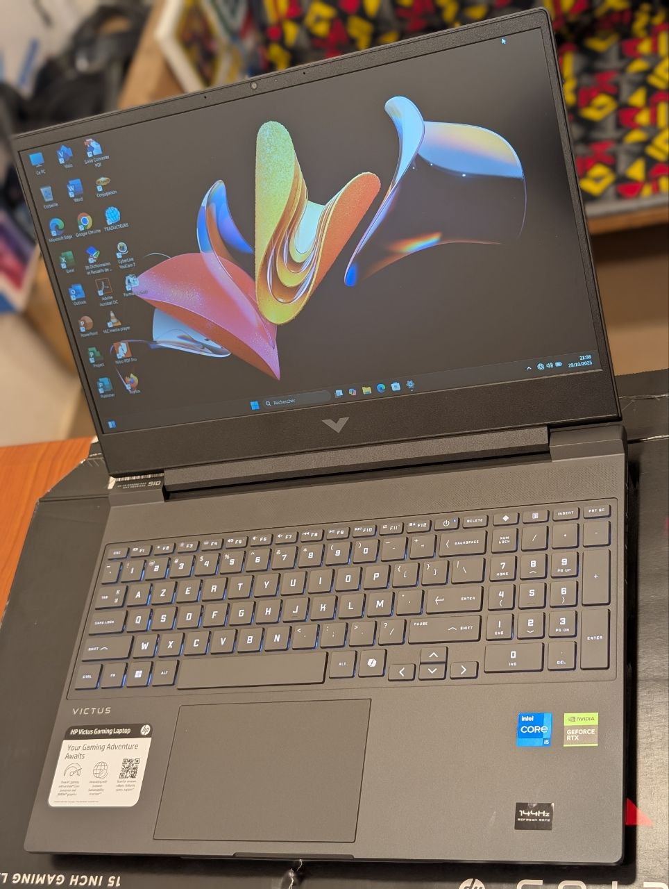 Ordinateur PC Gamer HP Victus 15-FA2082WM Gaming Core i5 13420H 512GB SSD 16GB DDR4 15.6″ FHD 144Hz Win11 RTX 4050 06GB Mica Silver Clavier Azerty retro-éclairé Prix : 595.000FCFA