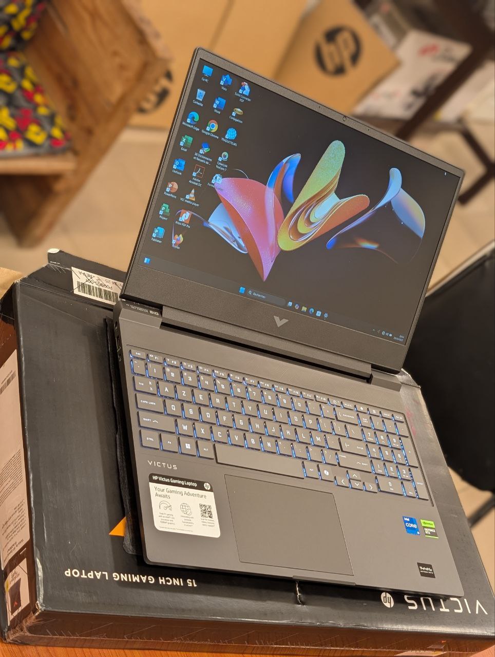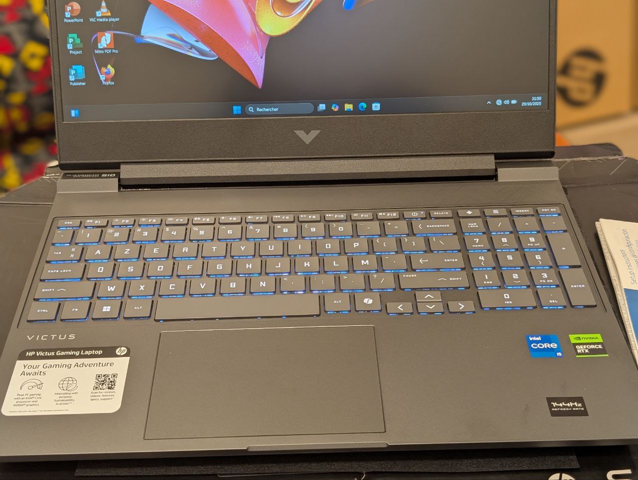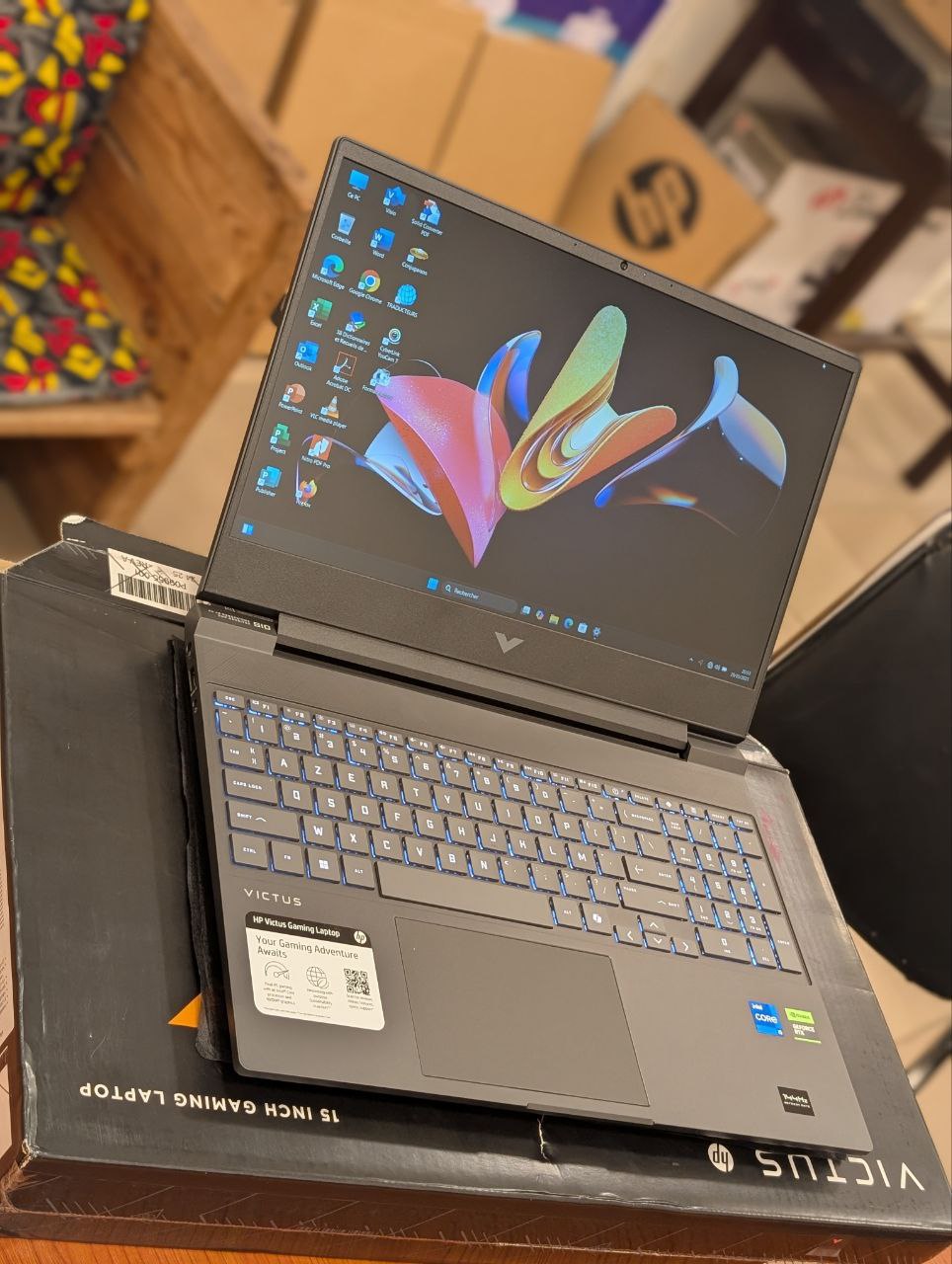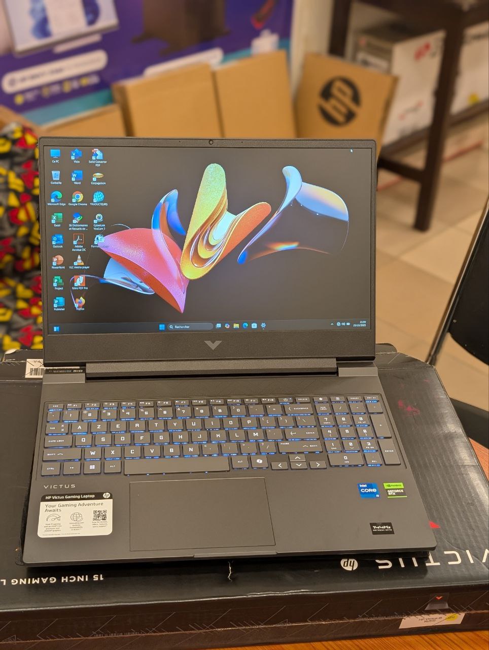 Ordinateur PC Gamer HP Victus 15-FA2082WM Gaming Core i5 13420H 512GB SSD 16GB DDR4 15.6″ FHD 144Hz Win11 RTX 4050 06GB Mica Silver Clavier Azerty retro-éclairé Prix : 595.000FCFA